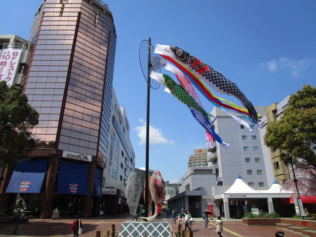 この時節、パルテノン大通りの十字路に、大きな鯉のぼりが登場しました。